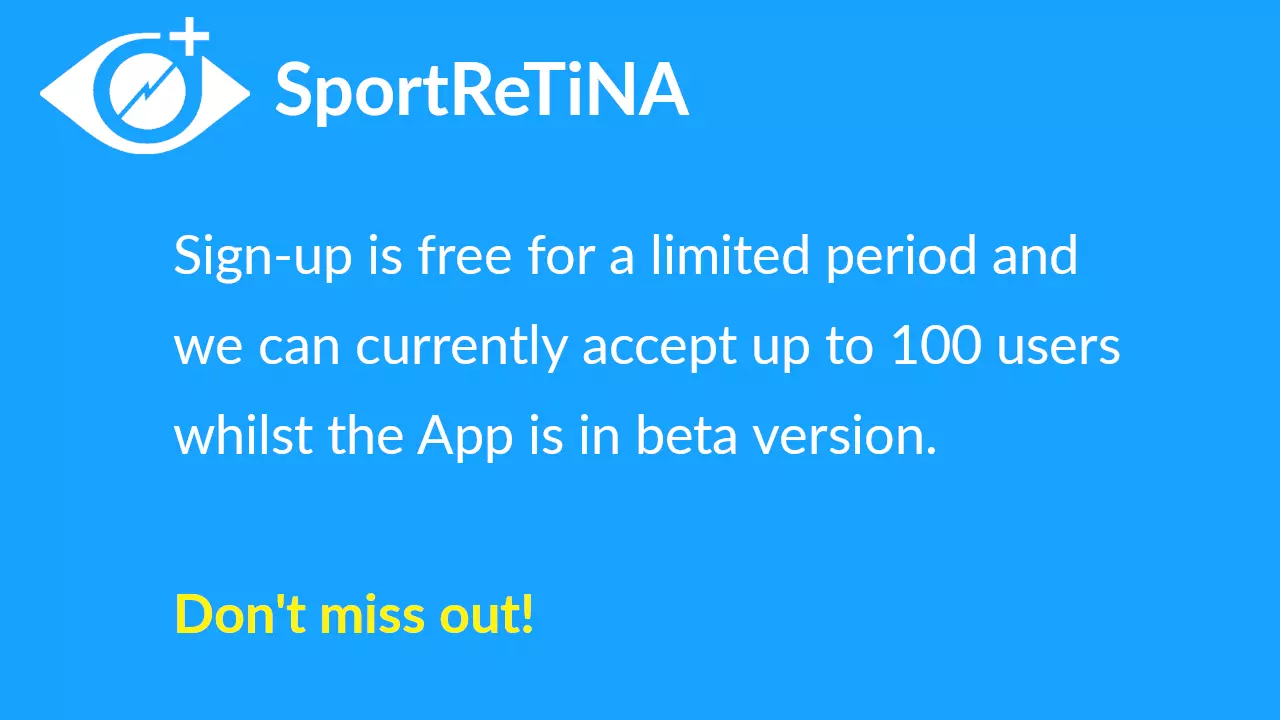 Sign-up for free(*) The sign-up is free whilst the services are in beta version. If you sign up as an early adopter, you will be eligible for special discounted offers once the services are officially launched. You will also be offered the opportunity to become a SportReTiNA ambassador and make earnings using our services.