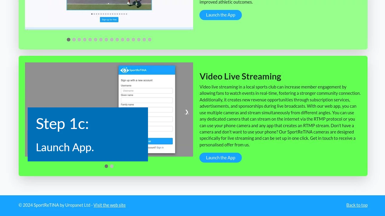Sign-up for freeVideo live streaming in a local sports club can increase member engagement by allowing fans to watch events in real-time, fostering a stronger community connection. Additionally, it creates new revenue opportunities through subscription services, advertisements, and sponsorships during live broadcasts. With our web app, you can use multiple cameras and stream simultaneously from different angles. You can use any dedicated camera that can stream on the internet via the RTMP protocol or you can use your phone camera and any app that creates an RTMP stream. Don't have a camera and don't want to use your phone? Our SportReTiNA cameras are designed specifically for live streaming and can be set up in one click. Get in touch to receive a personalised offer from us.